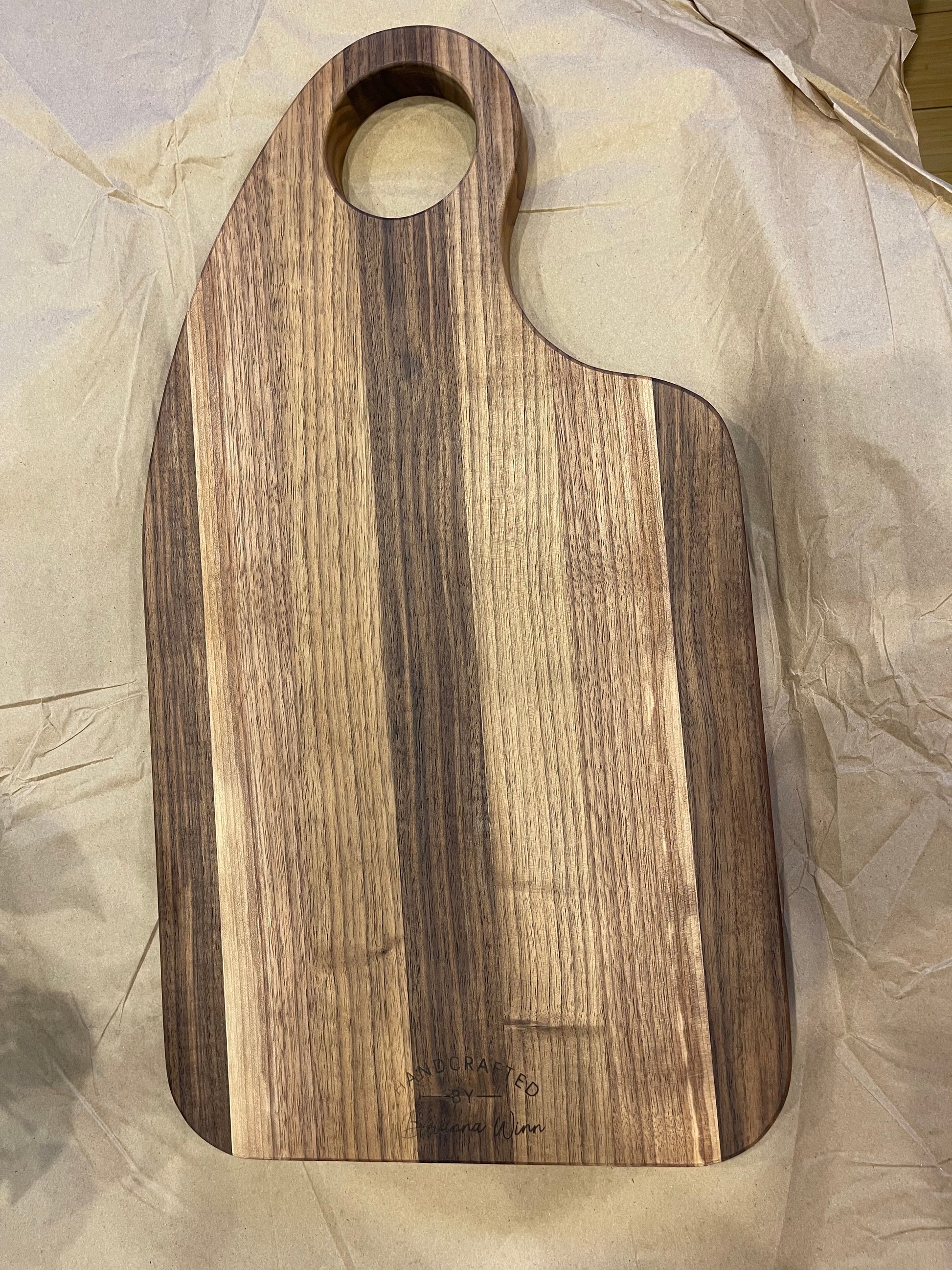 Beautifully handcrafted black walnut and maple charcuterie and cutting board.